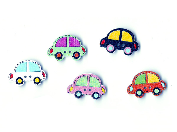 Guziki drewniane 25×18 mm auta samochód 5 szt. mix