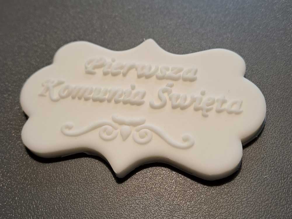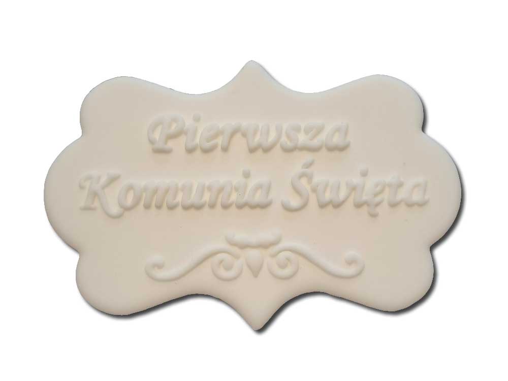 Plakietka cukrowa na tort Komunia biały napis