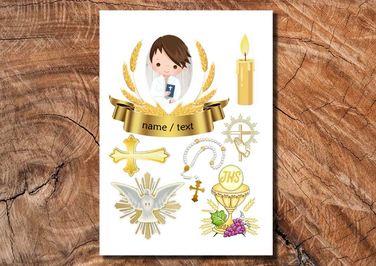 Wydruk cukrowy na tort Komunia Święta to doskonały sposób na stworzenie wyjątkowej i eleganckiej dekoracji, idealnej na tę ważną uroczystość. Wykonany na wysokiej jakości masie cukrowej lub opłatku spożywczym, pozwala w prosty sposób ozdobić tort, nadając mu niepowtarzalny wygląd. Dzięki wyrazistym kolorom i precyzyjnemu nadrukowi, każda słodka kompozycja stanie się prawdziwą ozdobą stołu i zachwyci wszystkich gości.