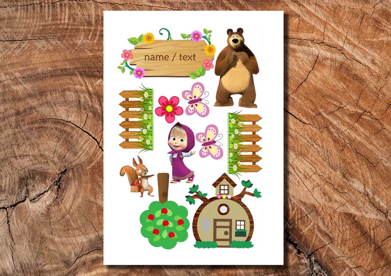 Wydruk cukrowy na tort A4 Masza i Niedżwiedż napis DIY