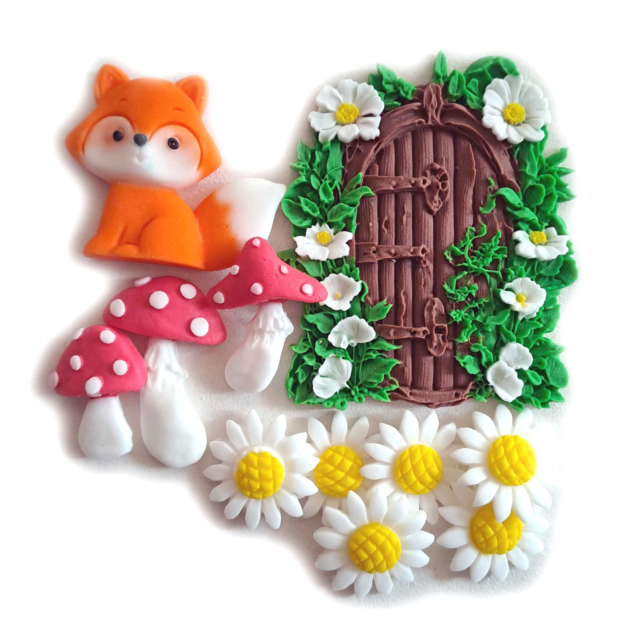 W skład zestawu wchodzą starannie wykonane elementy, które łatwo przeniosą każdy tort do tajemniczego świata ogrodu. Zestaw zawiera: